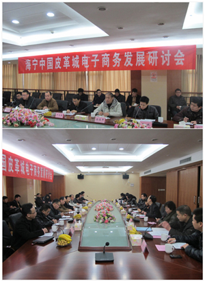 | 2012年3月4日上午,海宁中国皮革城召开了电子商务研讨会。此次研讨会由海宁中国皮革城有限公司主办,旨在研讨海宁中国皮革城电子商务的发展思路和运营模式。浙江省商务厅商贸发展处副处长卢成南、嘉兴市电子商务服务中心常务副主任陈俊年、中国电子商务协会行业电子商务推进办主任杨斌、嘉兴市互联网协会副秘书长钮元勇、中国服装网魏建强等专家应邀出席会议。海宁市科技局、海宁市三产服务与粮食局、海宁市工商行政管理局信息中心等相关部门出席会议。海宁中国皮革城有限公司董事长任有法携皮革城全体领导、电子商务小组及企业代表共同参与了研讨。